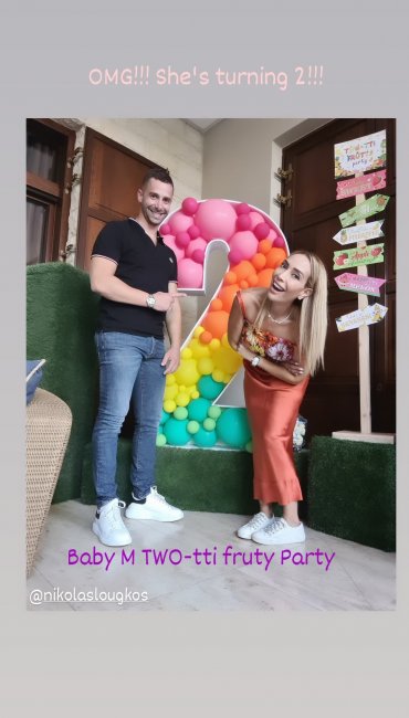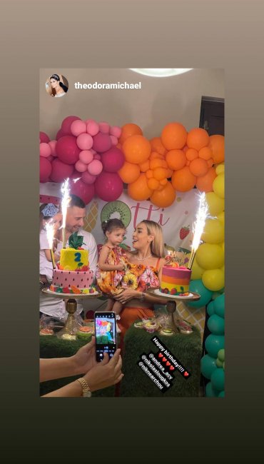 Το θέμα του πάρτι γενεθλίων ήταν τα φρούτα  «Two-tti Fruty» ενώ τα πολύχρωμα μπαλόνια σε έντονες αποχρώσεις ήταν σκορπισμένα στον χώρο δημιουργώντας ένα απίστευτο σκηνικό ζωντανών χρωμάτων. Η μικρούλα έσβησε την γενέθλια τούρτα της ενώ τόσο οι γονείς της όσο και οι παρευρισκόμενοι δεν σταμάτησαν να μοιράζονται στα social media τα όμορφα στιγμιότυπα.