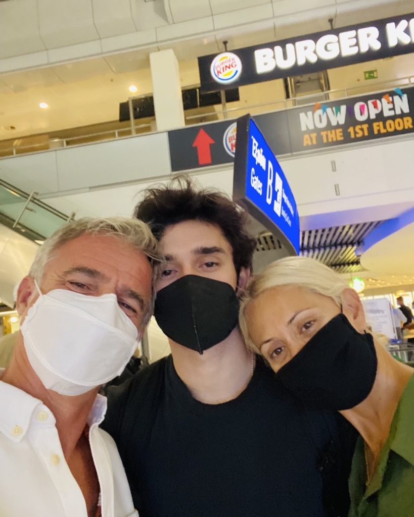 Ο 19χρονος , πόζαρε με τους γονείς του στο αεροδρόμιο Ελευθέριος Βενιζέλος λίγο πριν επιβιβαστεί. Το συγκεκριμένο στιγμιότυπο το μοιράστηκε ο μπαμπάς του στη συνέχεια στον λογαριασμό του στο Instagram.